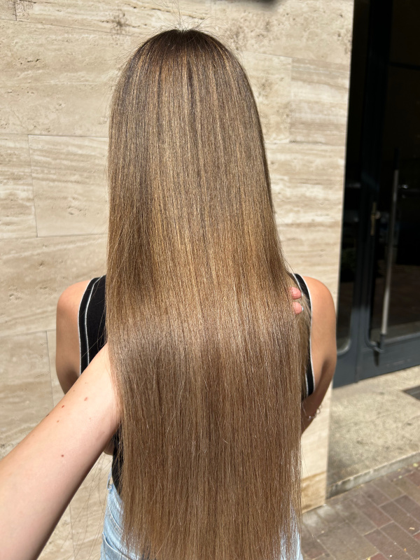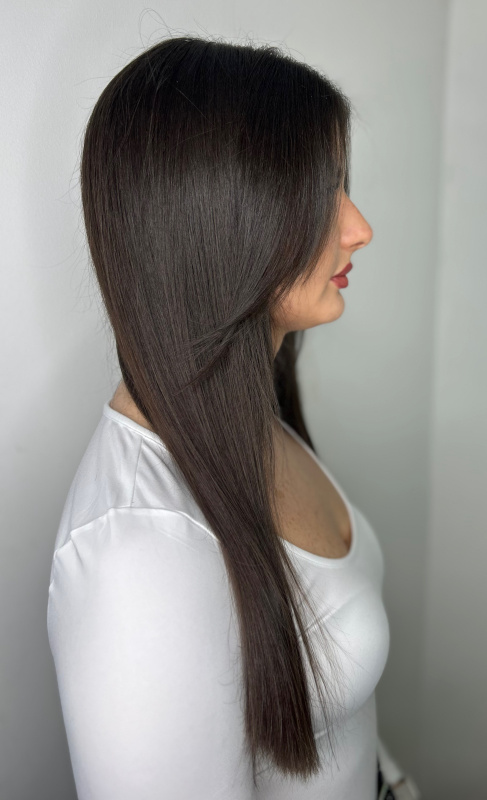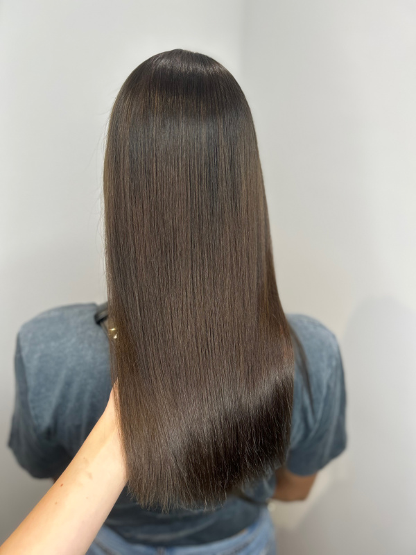 This treatment deeply nourishes and smooths the hair structure, leaving it straight, shiny, and easy to manage for an extended period. Using specialized active ingredients, the cuticle is sealed, making the hair not only smoother but also healthier and more elastic. You can enjoy a sleek, silky hairstyle without the need for daily straightening.