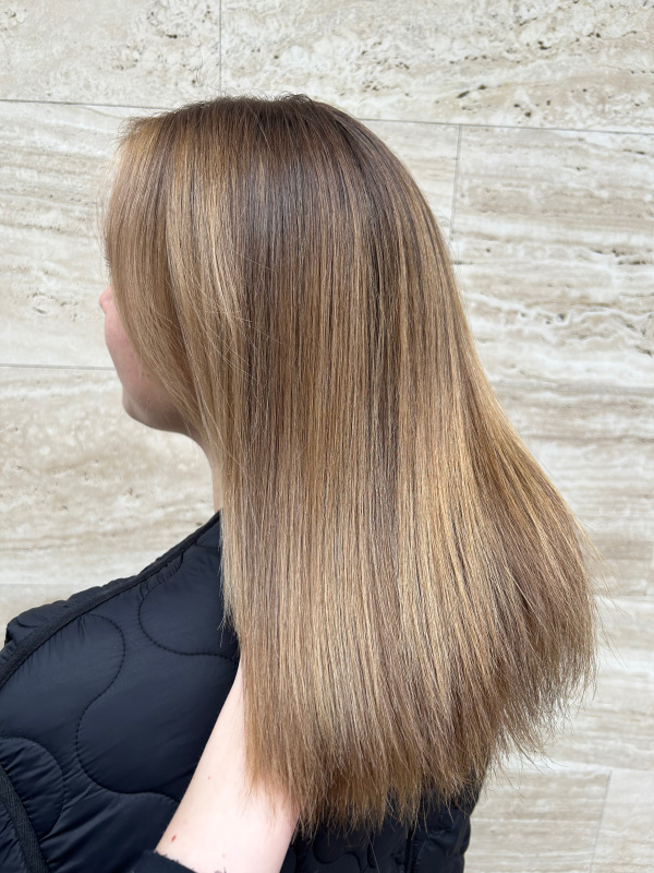 During the highlighting process, fine or more defined sections are lightened to create a brighter, more vibrant, and visually fuller-looking effect. The technique is always tailored to your hair color, skin tone, and personal style. It can result in a soft, sun-kissed look or a more pronounced contrast—whichever best suits you.