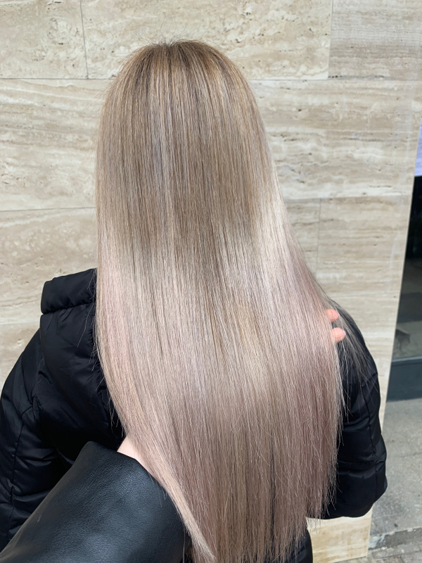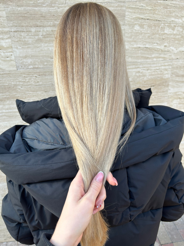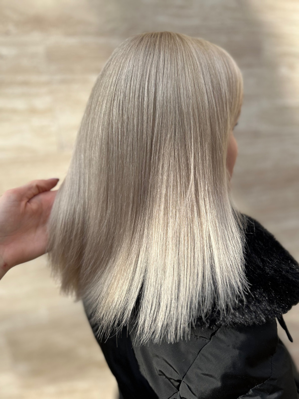 A full-length lightening service that lifts the entire hair to a brighter shade than the current color. The treatment includes full lightening with bleaching powder, toning, a health trim, washing, and professional styling.