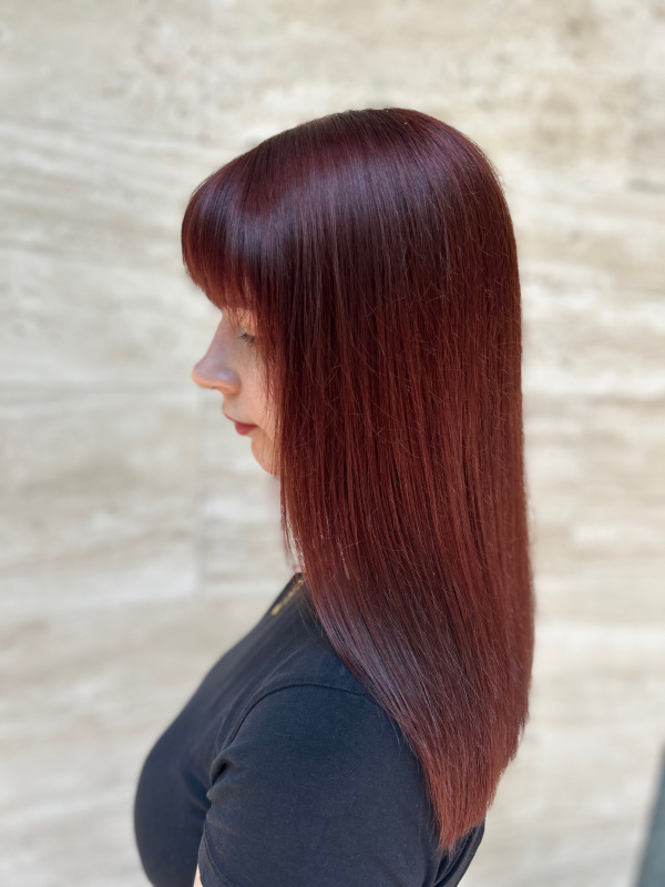 A full hair coloring treatment covers the entire length of the hair — including the roots, mid-lengths, and ends. This technique creates a uniform, even color that covers grey hairs and refreshes the overall appearance of the hair. Full coloring is suitable for maintaining your natural shade, darkening the hair, refreshing an existing color, or lightening natural, uncolored hair.